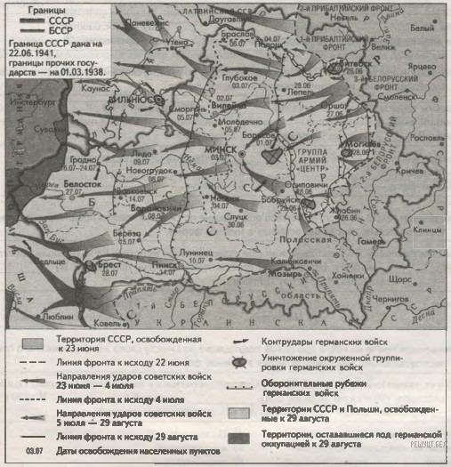 1) в районе Витебска советские войска разгромили группировку германских войск;